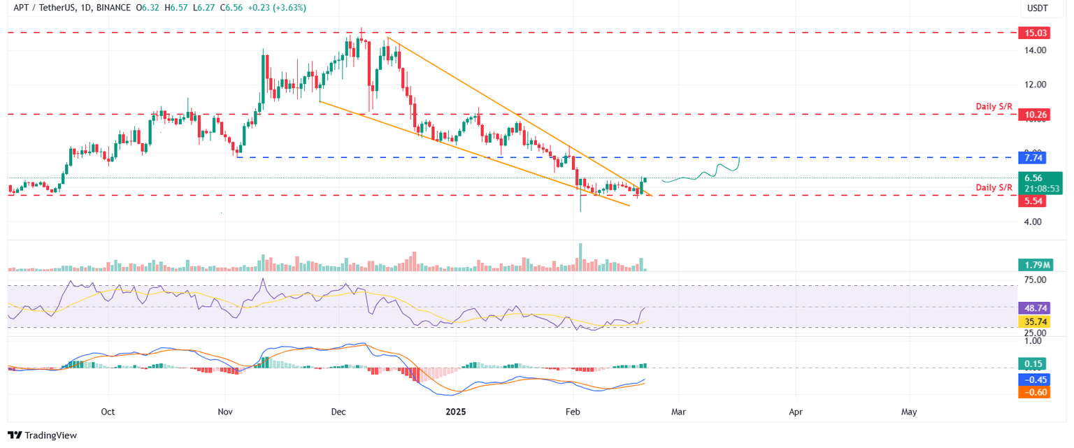 Aptos (APT) price extends its gain by 4%, trading around $6.56 on Thursday after breaking above the falling wedge pattern the previous day. Mereo announces strategic partnership with APT to enhance K-Pop fan experiences, further projecting the platform’s bullish outlook. Moreover, Coinglass APT’s long-to-short ratio reached its highest level in over a month, indicating more traders are betting for APT to rally.