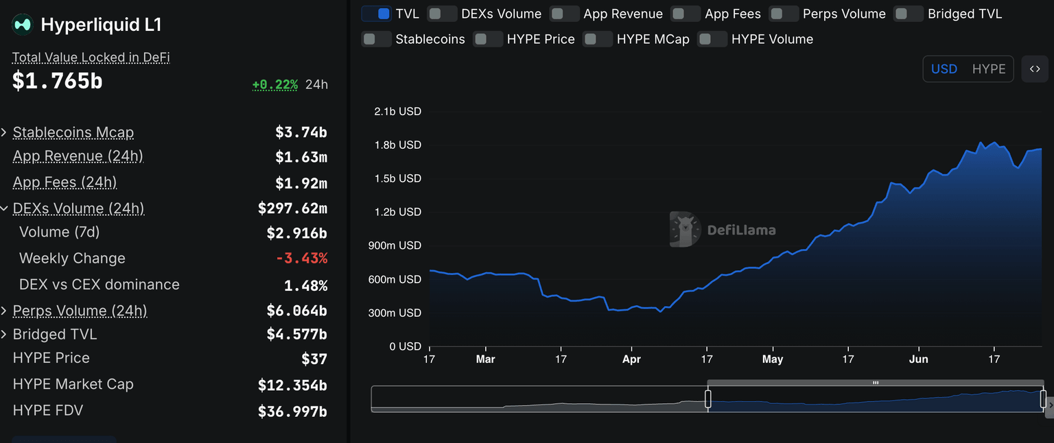 Hyperliquid finds support at $35.00 as DeFi TVL surges 80% in three months