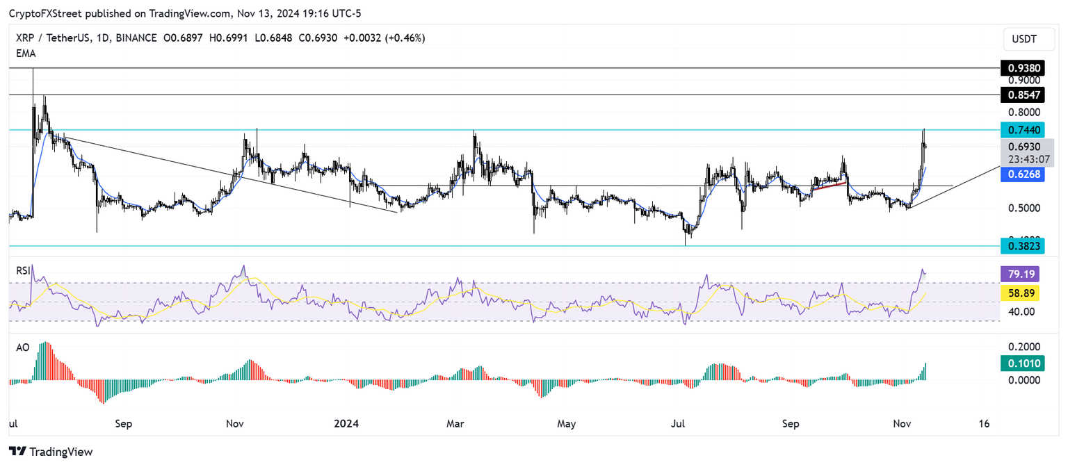 XRP struggles near $0.7440, could still sustain rally after Robinhood listing
