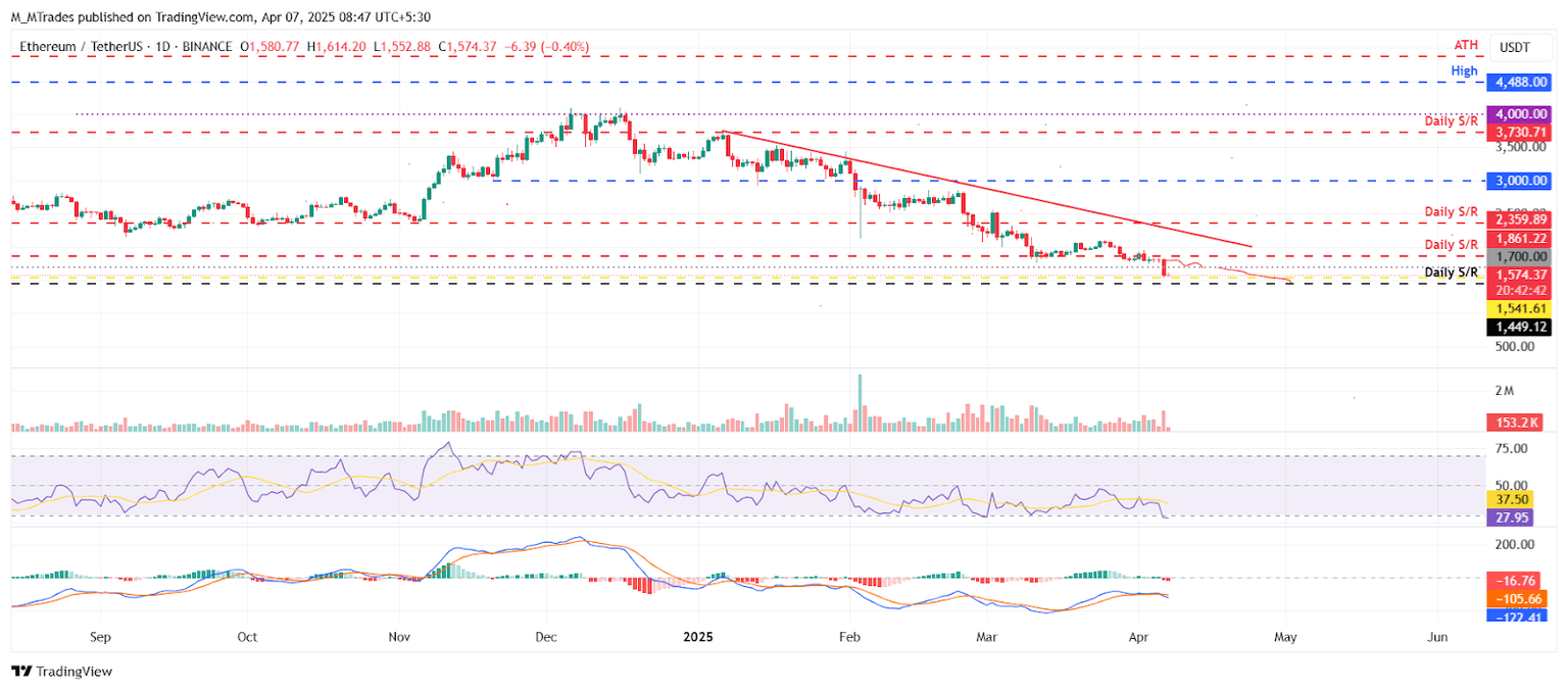 Ethereum price declined nearly 13% last week after failing to close above the daily level of $1,861. Moreover, on Sunday, it corrected to retest its important psychological level of $1,700, which it has not seen since October 2023. At the time of writing on Monday, it hovers around $1,575.
