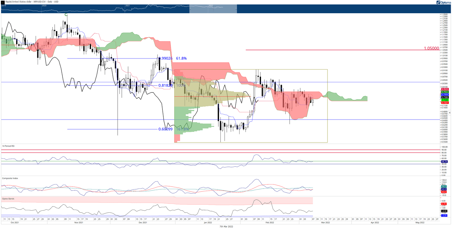 XRP price action shows a confirmed Ideal Bearish Ichimoku Breakout on the daily chart. However, bears failed to follow through, which may be due to some stubborn bullish pressure preventing a move lower. As a result, bullish conviction is now being tested, and so far, it appears to be waning.