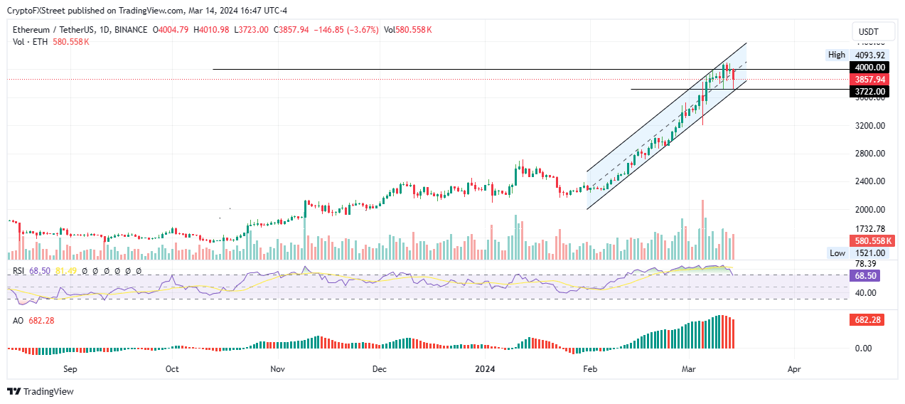 Ethereum (ETH) price breached the $4,000 psychological level on Monday but has failed to hold above it this week despite four successive attempts. The thrust came on the heels of the ‘buy the rumor sell the news event’ as the network geared up for the Dencun Upgrade, deployed on March 13.