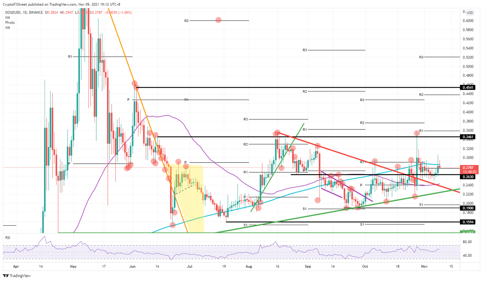Dogecoin (DOGE) price has been in a slow grind higher for several days now, but buy-side volume is picking up speed as tailwinds emerge in cryptocurrencies after Bitcoin hit new all-time highs. That spillover effect propels into a possible breakout towards $0.35, which would be the third and make-or-break retest of this pivotal historical level. When bulls are finally able to reclaim this level and consolidate above, expect a second wave in uptrend towards $0.45.