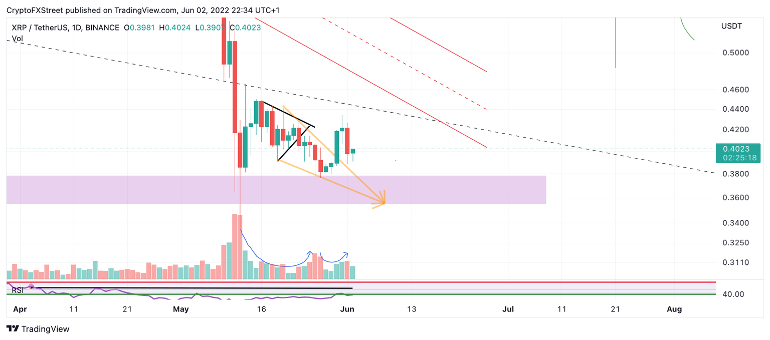 XRP price is likely to fall into the mid $0.30s again. Traders should keep the digital remittance token on their watchlist in hopes of catching a profitable trade. XRP price is still on pace for more decline. Invalidation of the bearish thesis is still a close above 0.44.