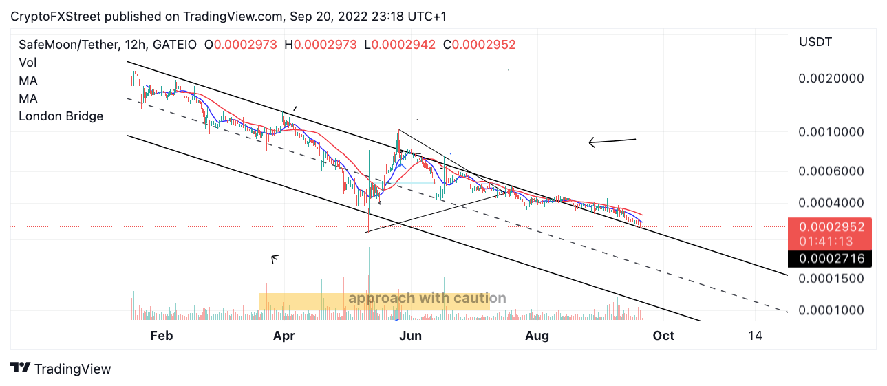 Safemoon price has been descending in turbulent fashion throughout the summer. A breach of the swing low established in May could catalyze a sharp decline. Safemoon price has been a lagging cryptocurrency throughout the summer.