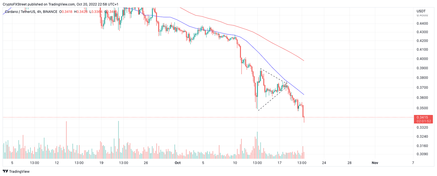 Cardano price shows potential for a continuous free-fall. The technicals suggest a powerful move underway. The bulls may want to remain sidelined until market conditions turn favorable. Invalidation of the bearish thesis is a breach above $0.37.