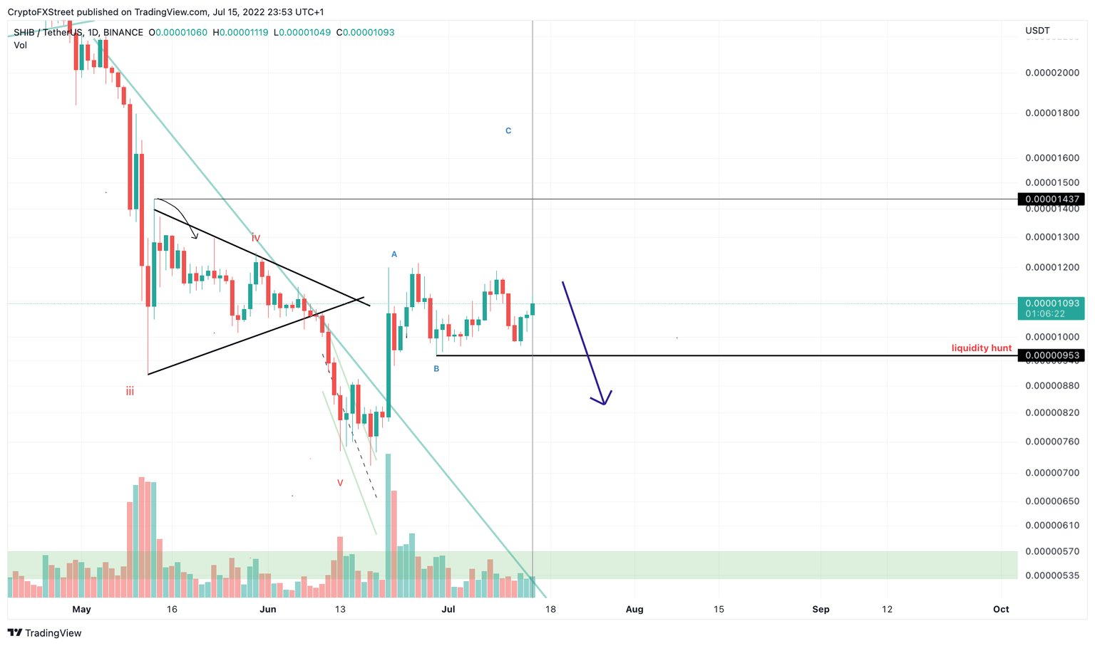 Shiba Inu price continued sideways price action merits a second guess in further up trend potential. A 25% decline is now on the table for the notorious meme coin. Shiba Inu price shows untrustworthy signals as the bulls are establishing a retracement since the 16% sell-off on June 9.