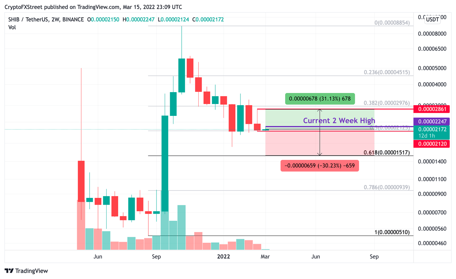 SHIBA INU price has a high chance of a 30% swing, according to the two-week chart