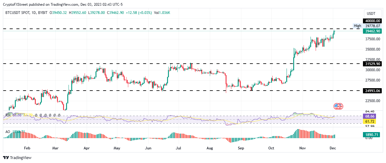 Bitcoin (BTC) price is trading with a bullish bias, riding on three themes. First, the fourth quarter has historically proven to be a good month for BTC. Secondly, there is strong anticipation for the approval of spot BTC exchange-traded funds (ETFs), with experts marking the calendar for between January 5 and 10. Third, the Bitcoin halving event slated for April 2024 remains something to look forward to.