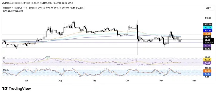 Litecoin Price Forecast: LTC tests $95 resistance amid weak demand