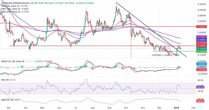 Dogecoin (DOGE) is trading down at the time of writing on Friday, reflecting a sudden spike in volatility following the release of the United States (US) Nonfarm Payrolls (NFP) report. The Bureau of Labor Statistics (BLS) reported that the US NFP rose by 50,000 in December, below market expectations of 60,000.