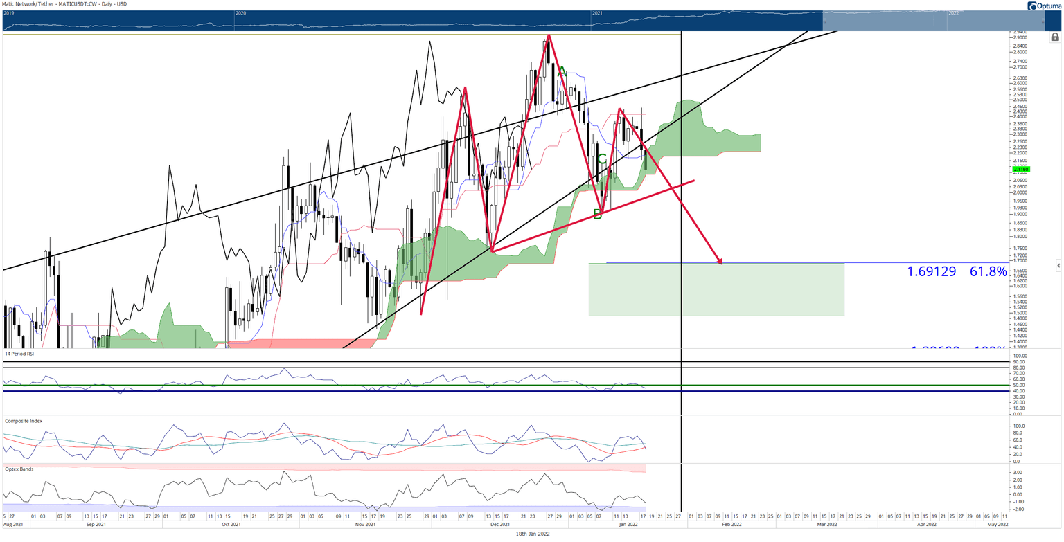 MATIC price action has fallen below the rising wedge for the second time in January; the first occurrence was on January 8. The Kijun-Sen is the final support zone, and if it fails, MATIC could drop 20%. MATIC price has some very imminent looking bearish price action ahead while the recent fundamentals are bullish.