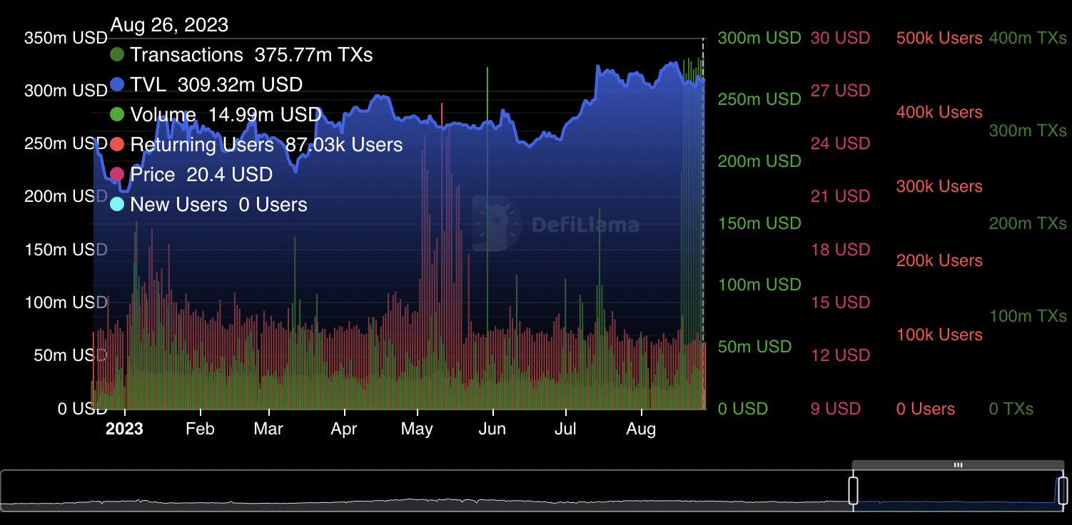Solana, one of Ethereum network’s competitors, witnessed a 50% increase in the total volume of assets locked (TVL) on its blockchain. Solana’s TVL climbed from 205.11 million to 309.32 million since the beginning of 2023.