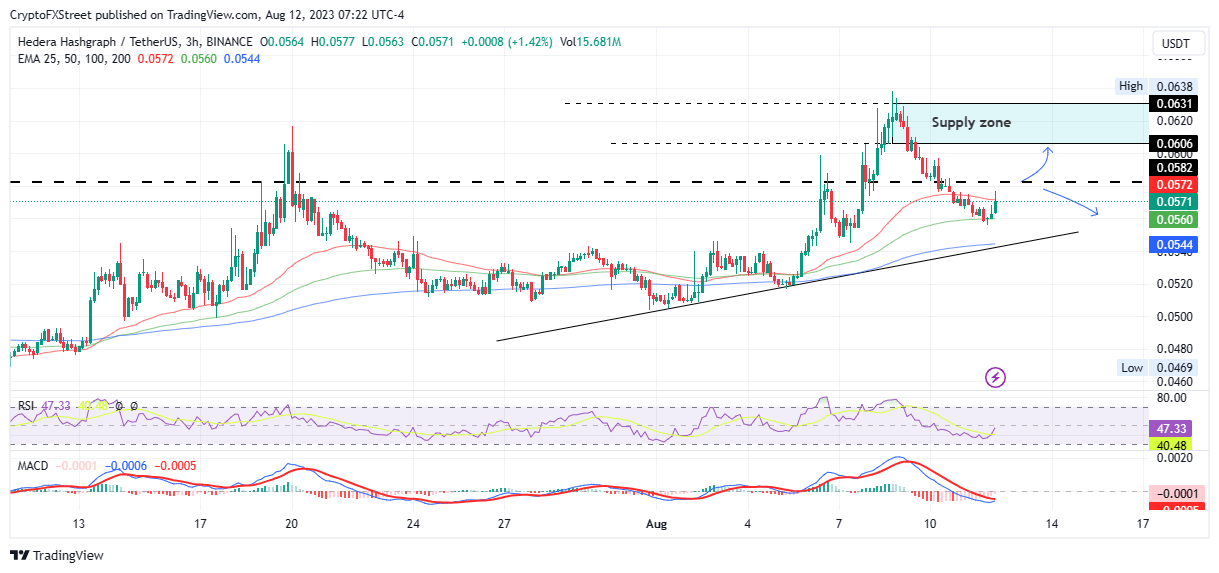 Hedera (HBAR) price is trading with a bullish bias in an attempted recovery from a recent downtrend. The bullishness comes as Bitcoin (BTC) and Ethereum (ETH) continue in a range-bound movement, consolidating along an equilibrium level as the crypto market craves a catalyst.