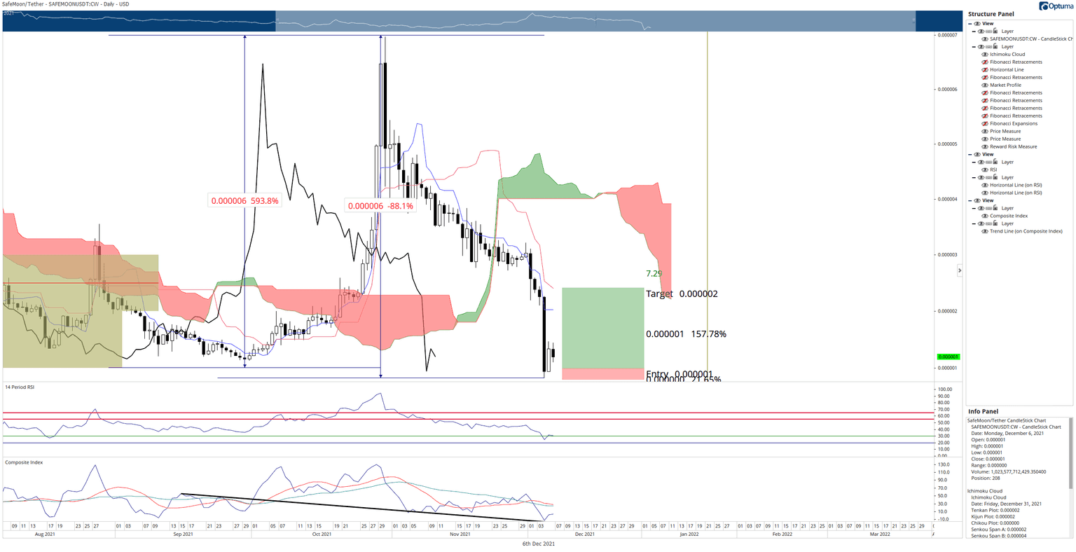 SafeMoon price, one of the most outstanding performers of 2021, is now one of the biggest pump and dump examples of 2021. After rising nearly 600% between September 29th and October 29th, SafeMoon crashed more than 88% to create a new all-time low on December 4th. SafeMoon price has a fantastic trade setup on its daily chart.