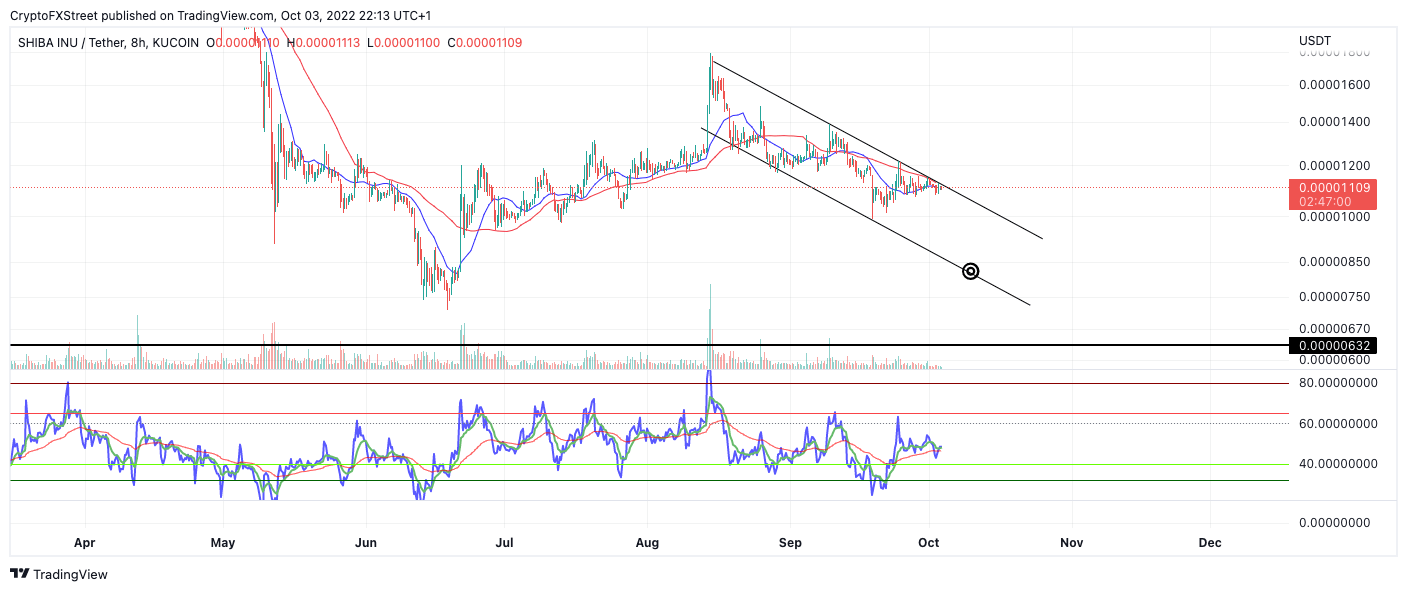 Shiba Inu price shows declining volume with each countertrend rise. The Relative Strength Index breached oversold territories and has yet to rise into the opposite extreme. Invalidation of the bearish thesis is a breach above September's monthly high.