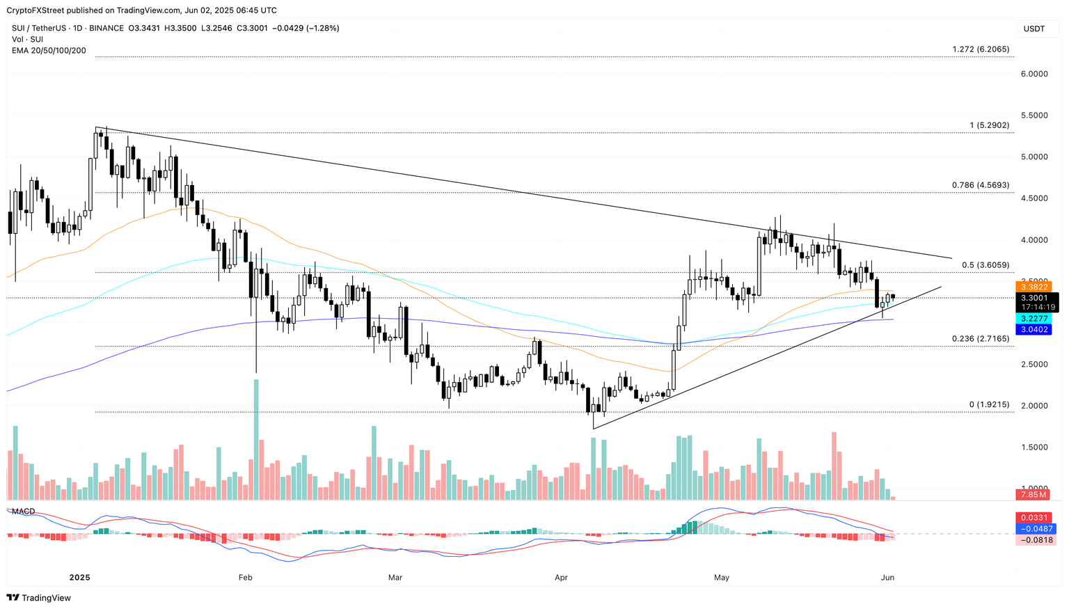 SUI Price Forecast: Fallout from triangle pattern could lead to further losses toward $2.70