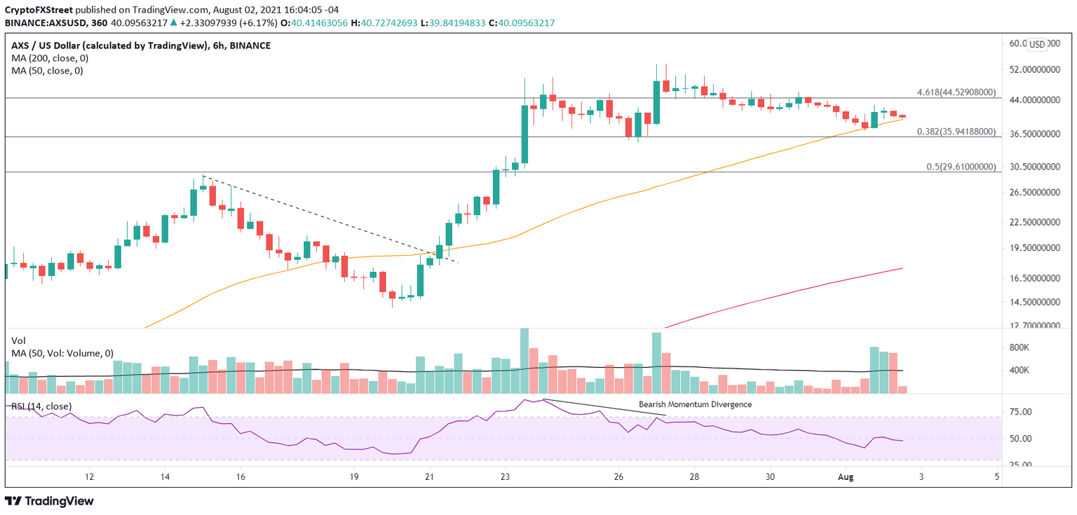 AXS price climbed 183.75% from May 21 to May 23, easily besting any previous three-day rally since 2020 and carry the cryptocurrency to the 461.8% extension of the April-May correction. Over the last ten days, Axie Infinity has fallen -6.23%, leaving doubt about the potential to continue the advance moving forward. However, as long as AXS price remains above the 38.2% retracement level at $35.94 on a daily closing basis, it is primed for higher prices.