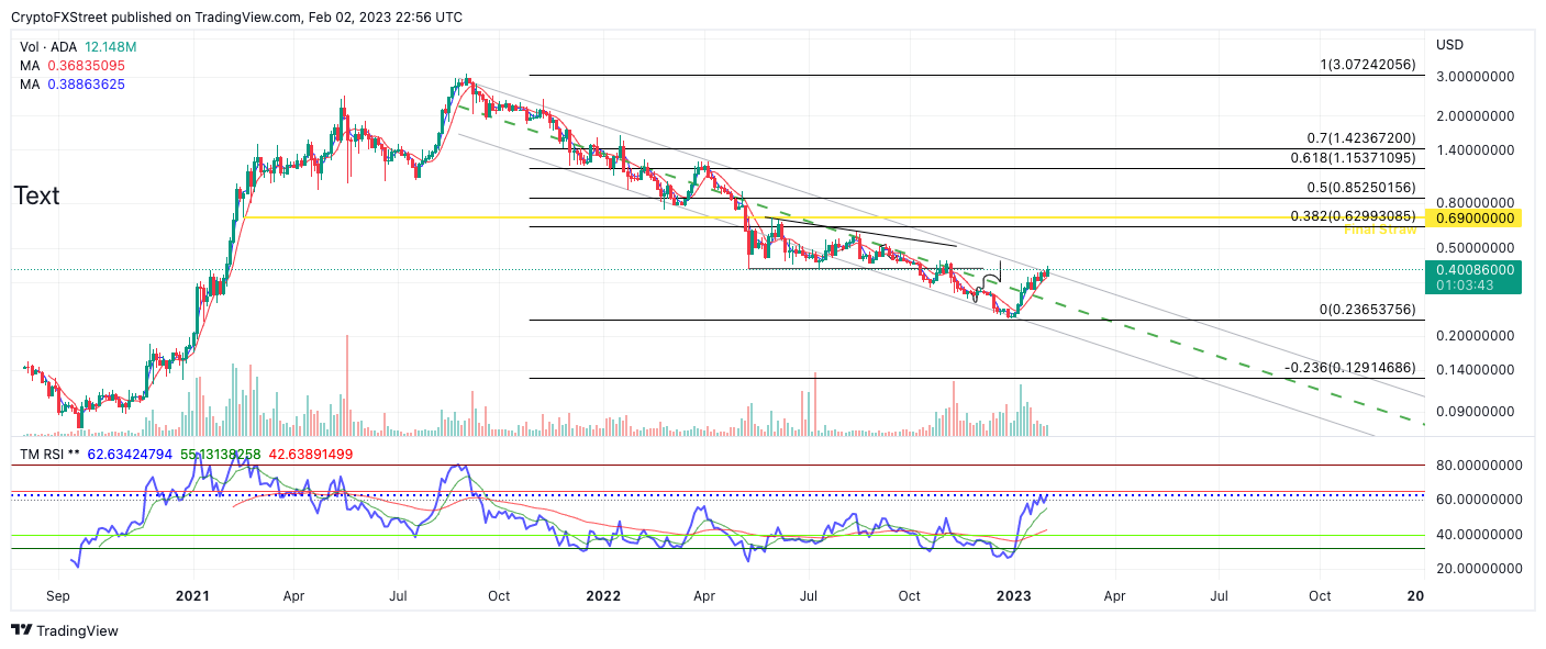Cardano price continues to make gains in the crypto market, as the smart contract has risen 70% since January 1, reaching a new uptrend high at $0.4138. Despite the skeptical market sentiment for risk assets, Cardano’s Price action remains unfazed.