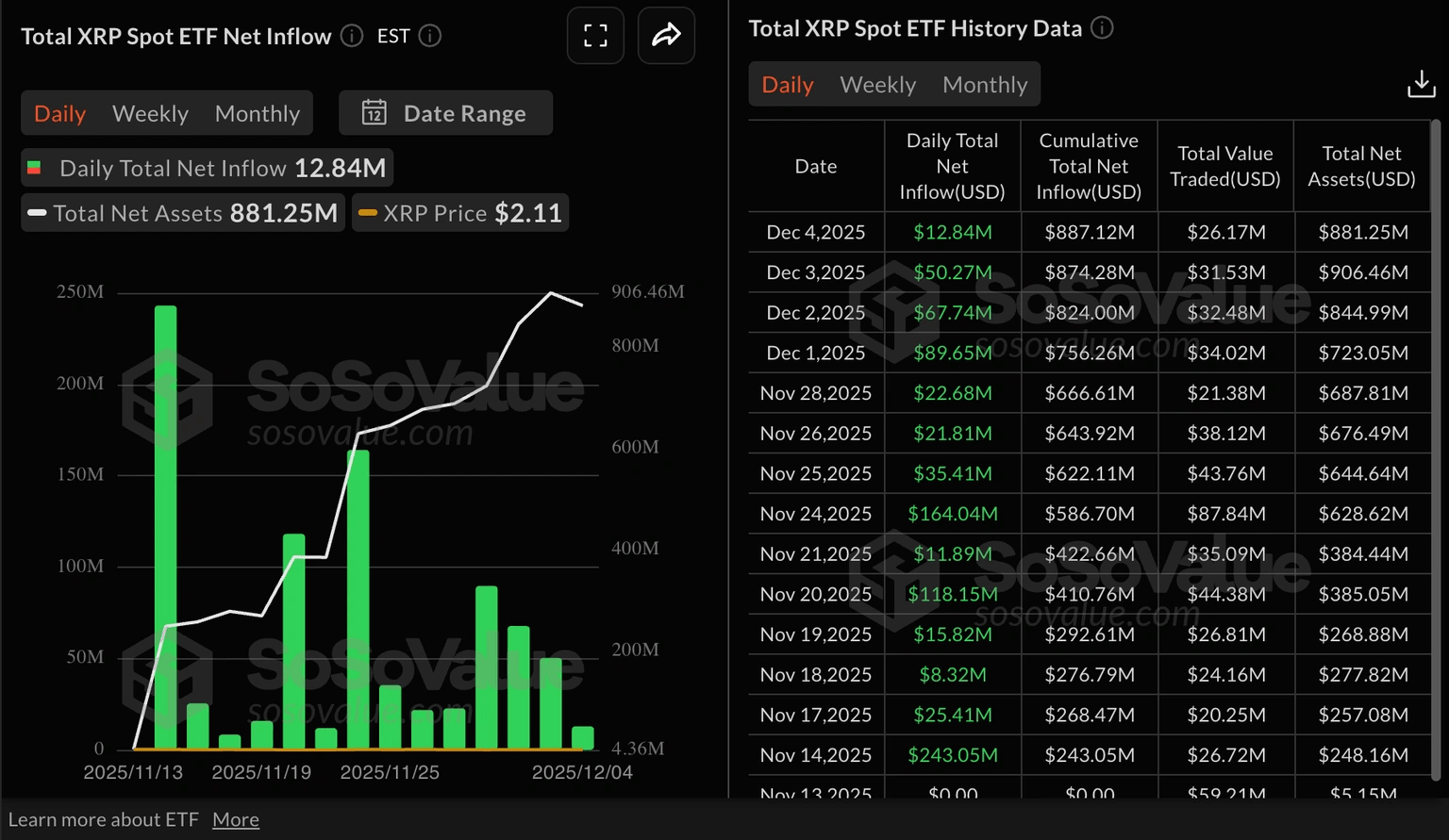 Ripple (XRP) is extending its decline for the second consecutive day, trading at $2.06 at the time of writing on Friday. Sentiment surrounding the cross-border remittance token continues to lag despite steady inflows into XRP spot Exchange Traded Funds (ETFs).
