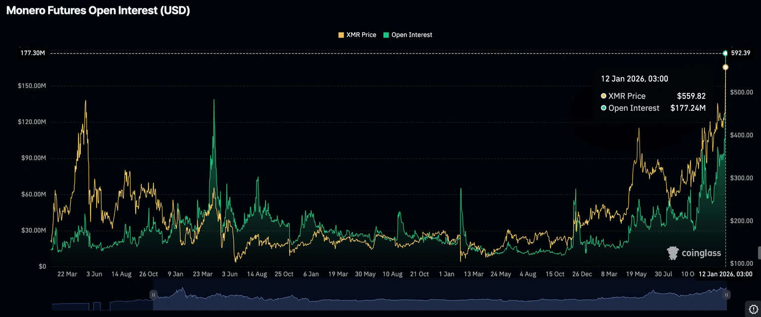 Monero (XMR) is trading near its new record high of $598 at the time of writing on Monday, after defying lethargic sentiment in the broader cryptocurrency market since the year started.