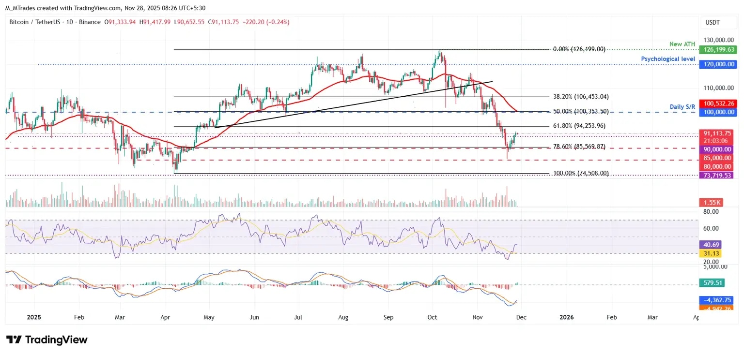Bitcoin price found support around the key psychological level of $80,000 last week, recovered slightly over the weekend, and has rebounded nearly 5% so far this week. At the time of writing on Friday, BTC hovers around $91,000. If BTC continues its recovery, it could extend the rally toward the next key psychological level at $100,000.
