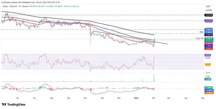 Zilliqa (ZIL) price is extending its gains, rallying over 20% to $0.006 on Tuesday after soaring nearly 34% the previous day. The upcoming Cancun upgrade this week is boosting investor sentiment, despite broader weakness in the crypto market. ZIL continues to attract strong buying interest, supported by rising trading activity and improving derivatives metrics.