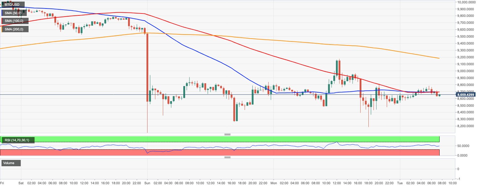 BTC/USD is changing hands at $8,730, having recovered from the intraday low of $8,534. The coin has stayed mostly unchanged on a day-to-day basis and gained 1.8% since the beginning of Tuesday. Now Bitcoin is trading within the strong short-term bearish bias amid high volatility.