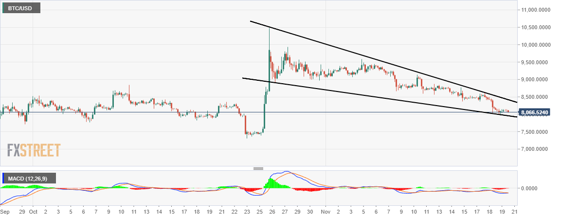 Bitcoin has been lethargic in its trading on Wednesday. From the opening price of $8,122, the price tested the hurdle at $8,150. However, the prevailing selling pressure has seen BTC adjust 0.7% lower on the day to trade at $8,066.