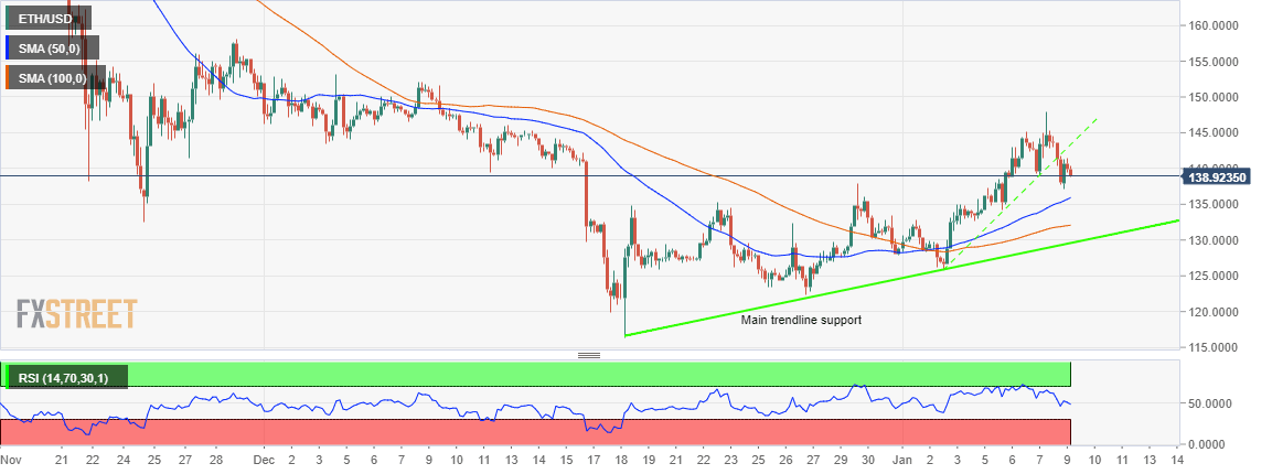Ethereum, on the other hand, is trading at $139.35 after the key support at $140 failed to hold. As discussed in the price analysis, the rejection at $148 could have opened a Pandora box and ETH/USD is on verge of a further lower correction anticipated to retest $120, $115 and $100 support areas.