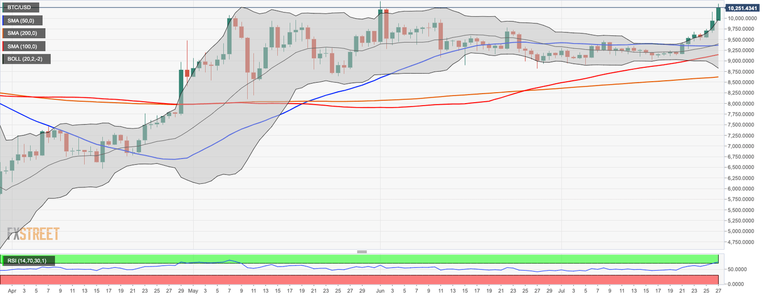 BTC/USD attempted to settle above $10,300 during early Asian hours only to retreat to $9,250 by press time. The first digital asset has been hovering around the key level for the best part of the day. The coin is vulnerable to the downside correction after a sharp growth as it stays overbought on all time frames. In the long run, BTC is set to test $17,000. https://www.fxstreet.com/cryptocurrencies/news/cryptocurrency-market-update-bitcoin-price-ultimate-test-to-17-000-202007270951