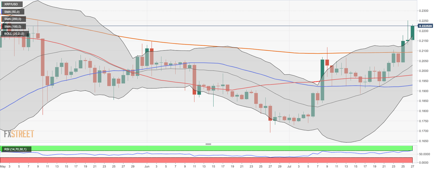 After a short-lived correction, XRP/USD resumed the recovery and settled above $0.2200. The coin has gained over 3% both on a day-to-day basis and since the beginning of the day to trade at $0.2230 by press time. the next resistance is crested by the recent recovery high of $0.2252. Once it is out of the way, the upside is likely to gain traction with the next focus on $0.2300.