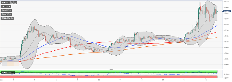 Ripple jumped to $0.2427 and retreated to $0.2360 by press time. The third-largest digital asset has been gaining ground after the resistance of $0.2100 gave way. XRRP/USD has gained 6.5% since this time on Tuesday, moving in sync with the market. The short-term trend is bullish.