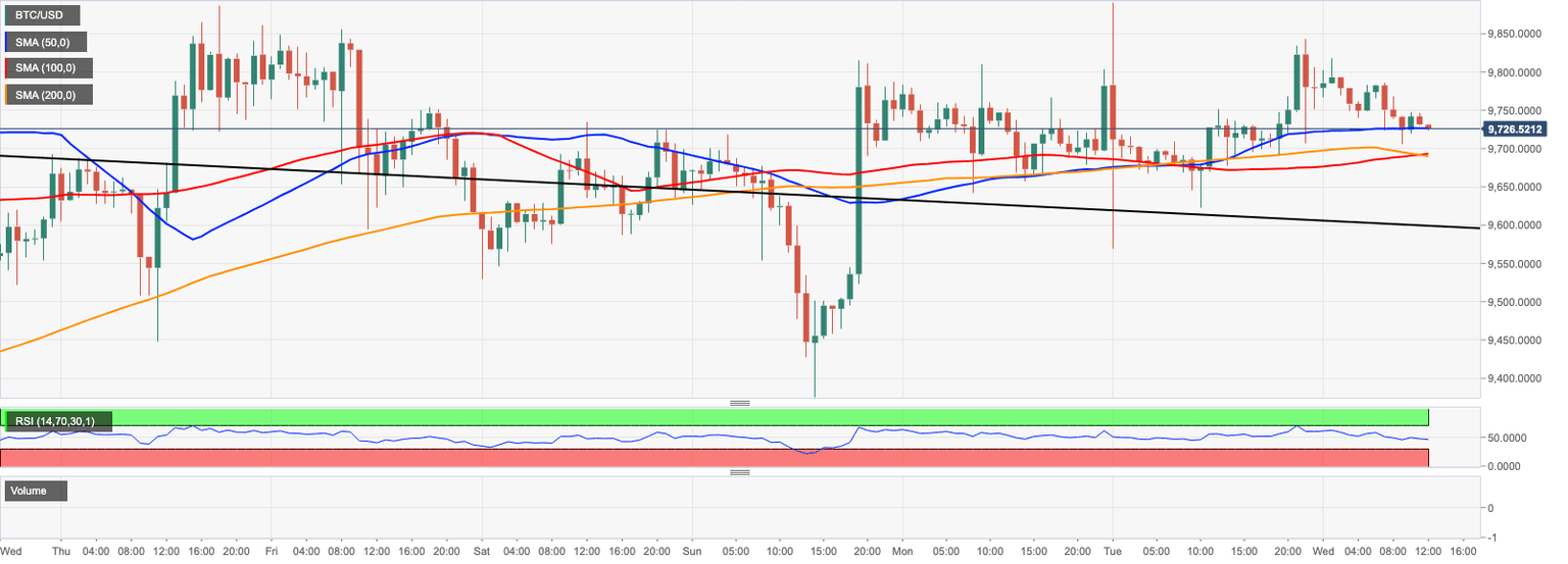 BTC/USD has barely moved in recent 24 hours. At the time of writing, the first digital asset is changing hands at $9,750, while the local resistance is created by $9,800. This area was rejected on several occasions earlier this week, which makes it harder for the bulls. The support comes at $9,600, which is the upper line of the broken triangle pattern.