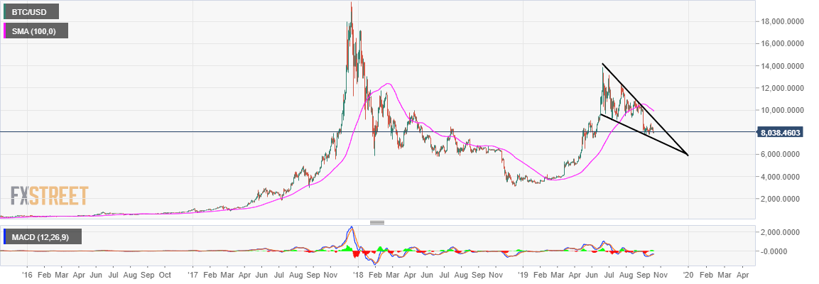- Bitcoin resurfaces above $8,000 ahead of a falling wedge pattern breakout.