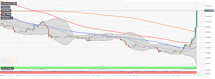 From the technical point of view, DASH is deeply overbought on all timeframes. It means that the coin is vulnerable to a correction, though it is not guaranteed considering a wild speculative market. The initial support is created by a psychological $100.00. Once it is broken, the correction may continue towards $80.50 reinforced by SMA200 daily. This area is likely to slow down the bears; however, a sustainable move lower will open up the way towards SMA100 daily at $59.60.