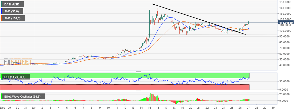 - Dash triangle breakout yields immensely, pushing the price above the critical $115.
