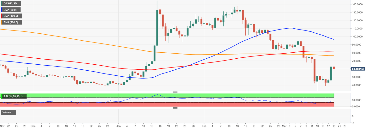 DASH bottomed at $33.18 on March 13 amid global sell-off on the cryptocurrency market. Since that time the coin nearly doubled its value, while its technical picture improved significantly. However, from the long-term perspective, the coin still needs to recover above SMA200 ($76.46) daily to reverse the trend. Once it is out of the way, the upside is likely to gain traction with the next focus on SMA50 daily ($95.00) and psychological $100.00.