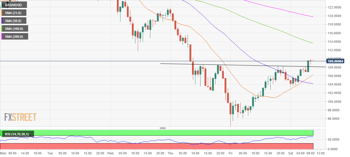 Dash (DASH/USD) bulls take a breather just under the $110 level after the renewed uptick.