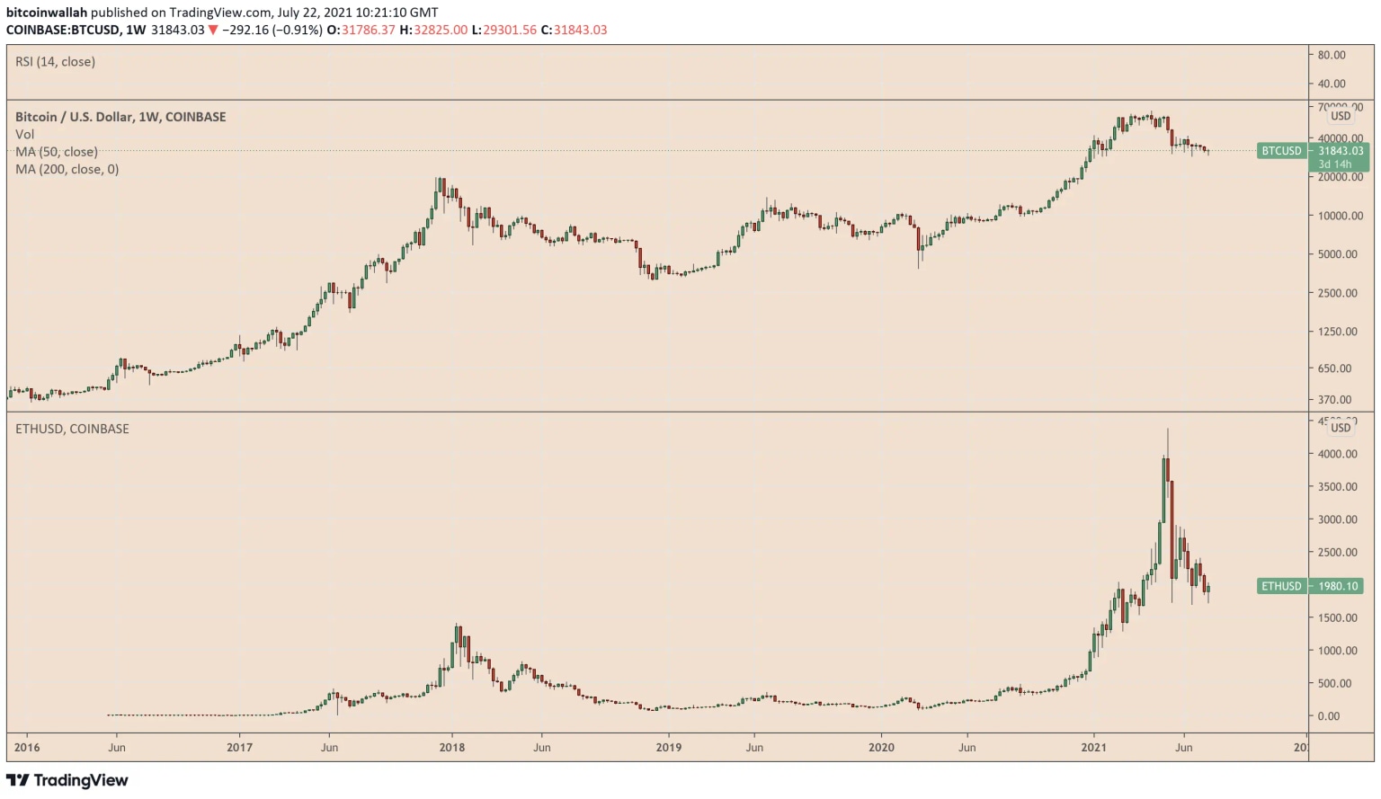 While different in terms of economics and use cases, both digital assets tend to move in the same direction. In recent history, their losses and profits appeared well-synced, illustrating that their holders might see their investments grow rapidly during bull trends but, at the same time, risk losing a lot when the uptrend exhausts and reverses to the bearish side.