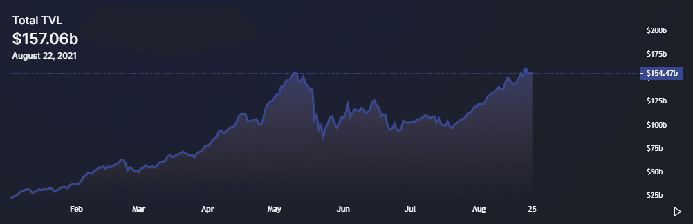 Data from DeFi Llama shows that the total value locked (TVL) in all DeFi protocols reached a new all-time high at $157.06 billion on Aug. 22 and many analysts believe TVL is one of the best measures of sentiment within the DeFi ecosystem.