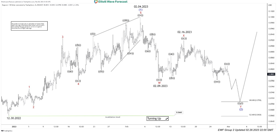 Dogecoin 4 hour Elliott Wave analysis 28 February 2023