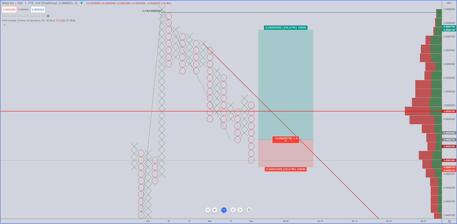 SHIBA/USDT $0.0000025/3-box Reversal Point and Figure Chart