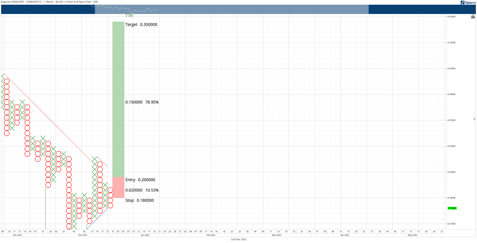 DOGE/USDT $0.005/3-box Reversal Point and Figure Chart