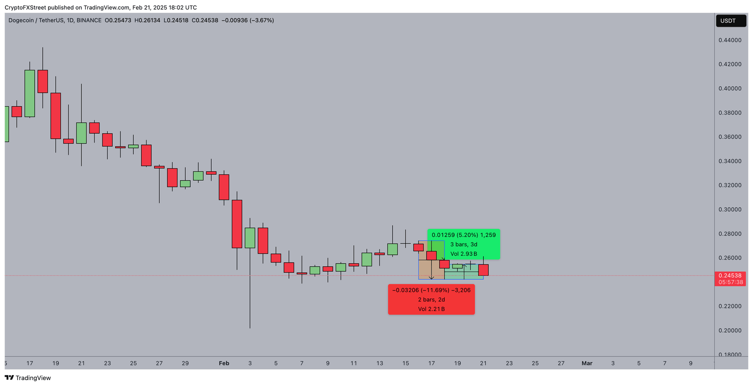Dogecoin falls to $0.24 as LIBRA memecoin controversy nullifies DOGE ETF hype