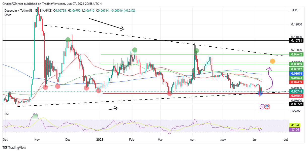 If the thesis plays out, Dogecoin price could breach resistance levels presented by the 50-, 100- and 200-day Simple Moving Averages (SMA) at $0,074, $0.076, and $0.080, respectively. Further north, the giant meme coin could tag the 0.083 roadblock, levels last tested around April.