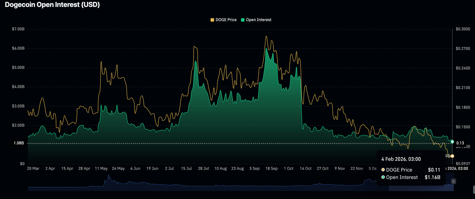 - DOGE faces a significant decline in retail interest, with Open Interest shrinking to $1.16 billion.