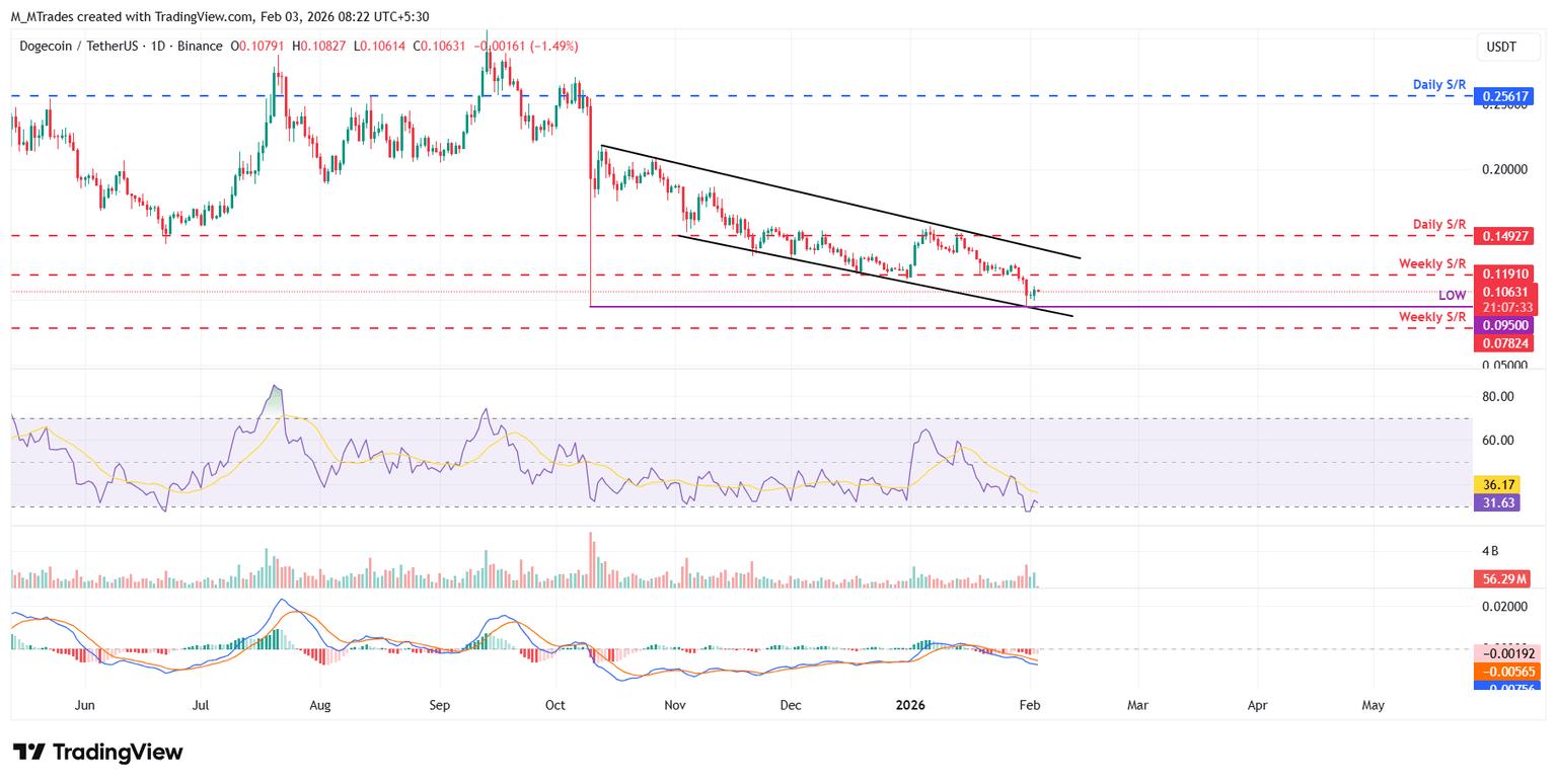 Dogecoin (DOGE) price stabilizes at $0.106 at the time of writing on Tuesday, following a slight rebound the previous day after a massive correction last week. On-chain data suggests the dog-themed meme coin may be undervalued and poised for a near-term bounce. However, the broader technical structure remains bearish, prompting traders to remain cautious.