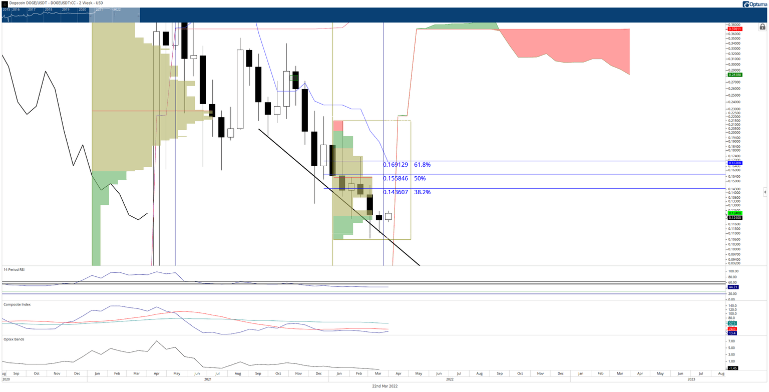 If Dogecoin price fulfills a close above $0.124, it should have a relatively easy push towards the next resistance cluster at $0.14. $0.14 contains the 38.2% Fibonacci retracement and the 2022 Volume Point Of Control. However, the primary target for bulls is $0.16 - which means passing the 50% Fibonacci retracement at $0.155.
