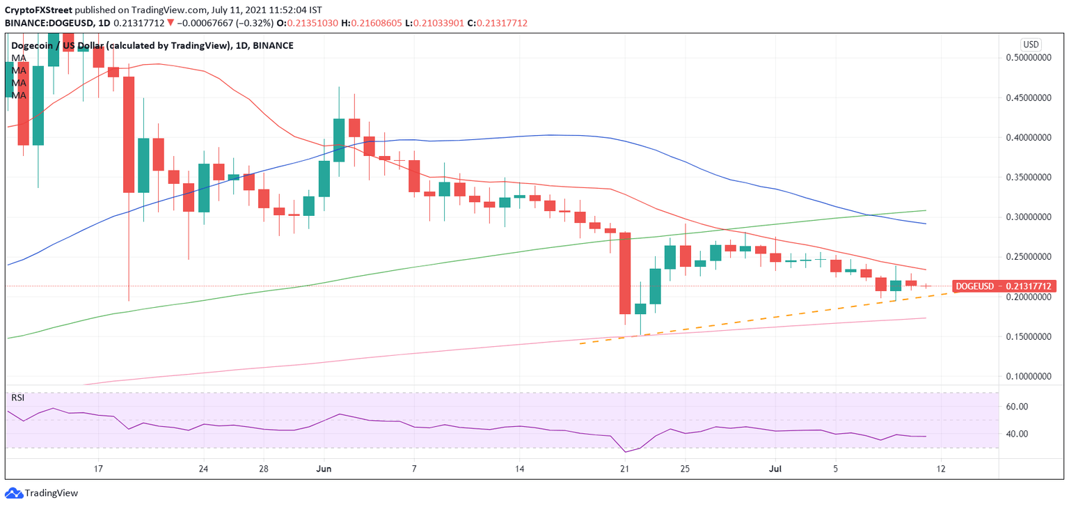 - Dogecoin price eyes a break below this key support on the daily chart.